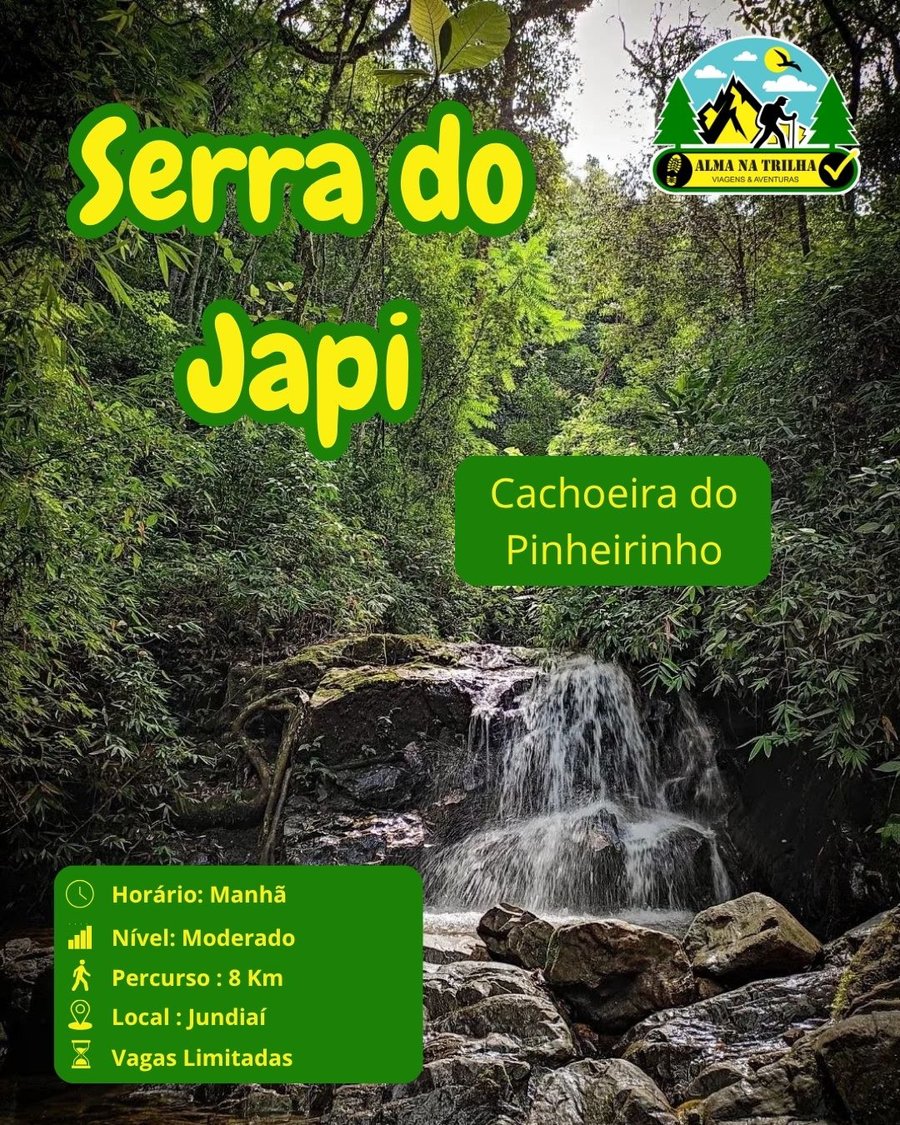 🌿💦 Desvende um recanto escondido de natureza e aventura na Serra do Japi! A Cachoeira do Pinheirinho é uma queda d’água localizada em meio a um riacho na mata atlântica da serra, acessível por uma trilha que mistura subidas, descidas e caminhos estreitos em meio à floresta. Aventura e natureza aguardam por você! 🏞️👣" 🛤️🌳✨ Porque trilha é melhor que sofá!! Ela alimenta, nutre e anima! Sinta a Alma na Trilha! 🚶♂️💚