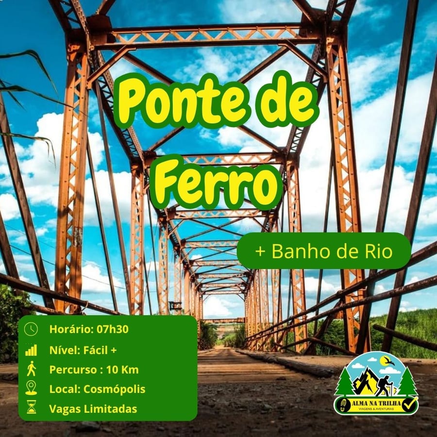 🏞️ Prepare-se para explorar um local fascinante na caminhada até a Ponte de Ferro! 🥾🌳 Para chegar até a Ponte, é preciso atravessar uma Usina de Cana, um canavial e um trecho de trilha por mata fechada. Se desejar, aproveite um banho revigorante na trilha 💦. É uma verdadeira experiência de banho de floresta, onde cada passo convida à contemplação, ao som puro e envolvente da natureza. Só a Alma na Trilha proporciona essa conexão profunda com o ambiente natural! Porque trilha é melhor que sofá! Ela alimenta, nutre e anima! Sinta a Alma na Trilha! 🚶♂️💚