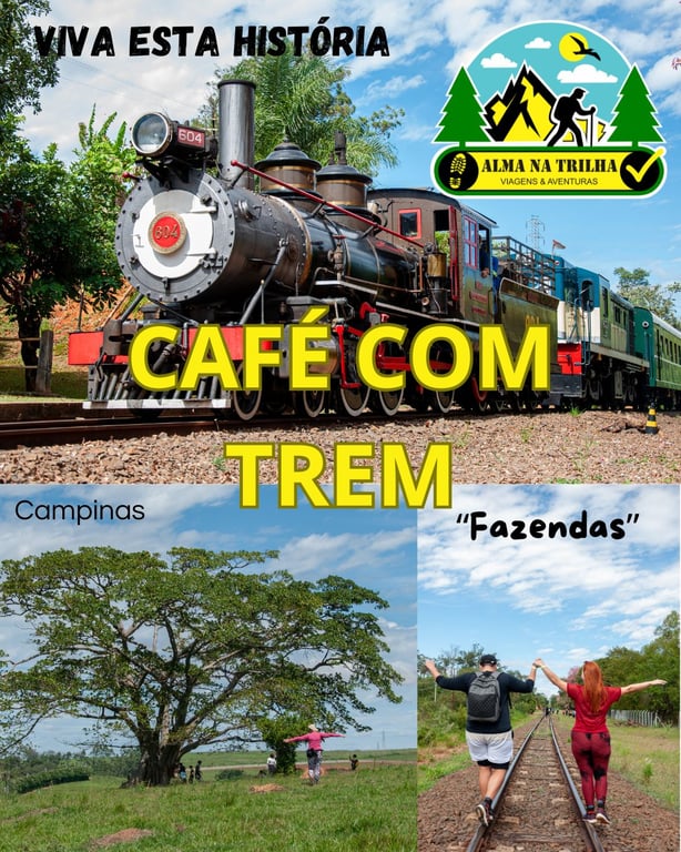 Na volta, fazemos uma parada no charmoso Café com Trem, onde somos recebidos pelo nosso amigo Rogério para um delicioso café da manhã ( Incluso) ☕✨ Além disso, podemos assistir ao trem passando pela histórica Estação Pedro Américo, revivendo a nostalgia da ferrovia.