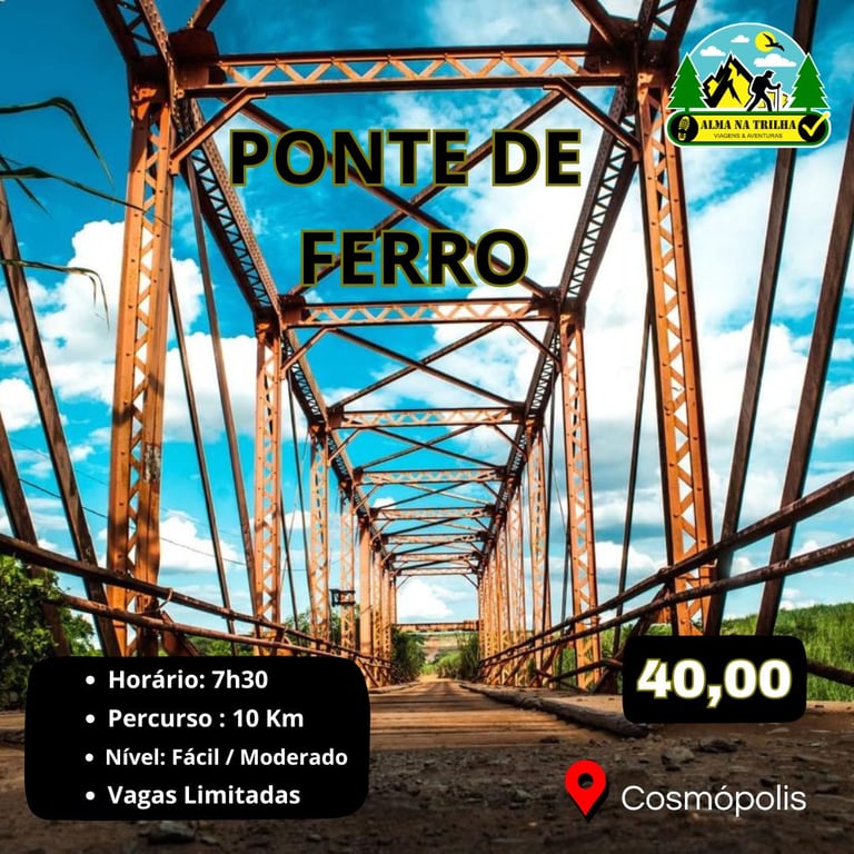 Localizada em terras da Usina Ester, em uma Área de Preservação Ambiental, a Ponte de Ferro impressiona com seus 6 metros de altura e 48 metros de comprimento, erguida a 8 metros acima do Rio Jaguari. A estrutura em treliça garante uma vista deslumbrante, refletida nas águas do rio. 🌊🌅