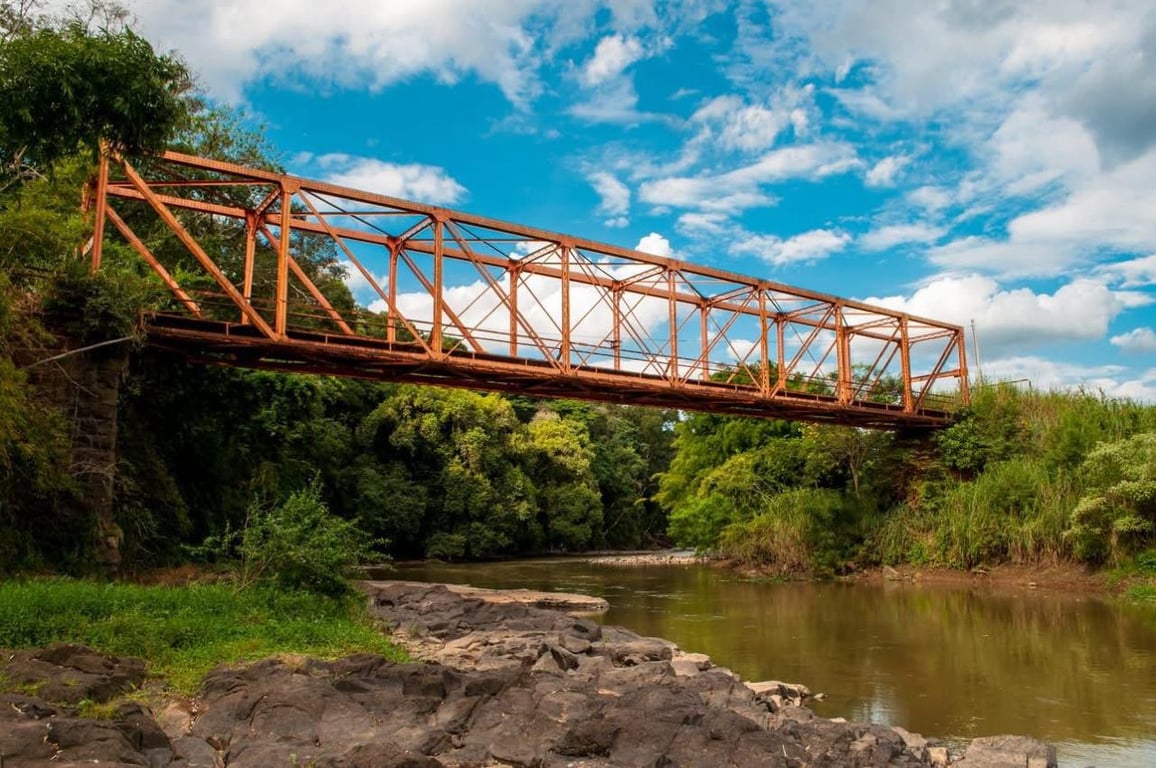 Localizada em terras da Usina Ester, em uma Área de Preservação Ambiental, a Ponte de Ferro impressiona com seus 6 metros de altura e 48 metros de comprimento, erguida a 8 metros acima do Rio Jaguari. A estrutura em treliça garante uma vista deslumbrante, refletida nas águas do rio. 🌊🌅